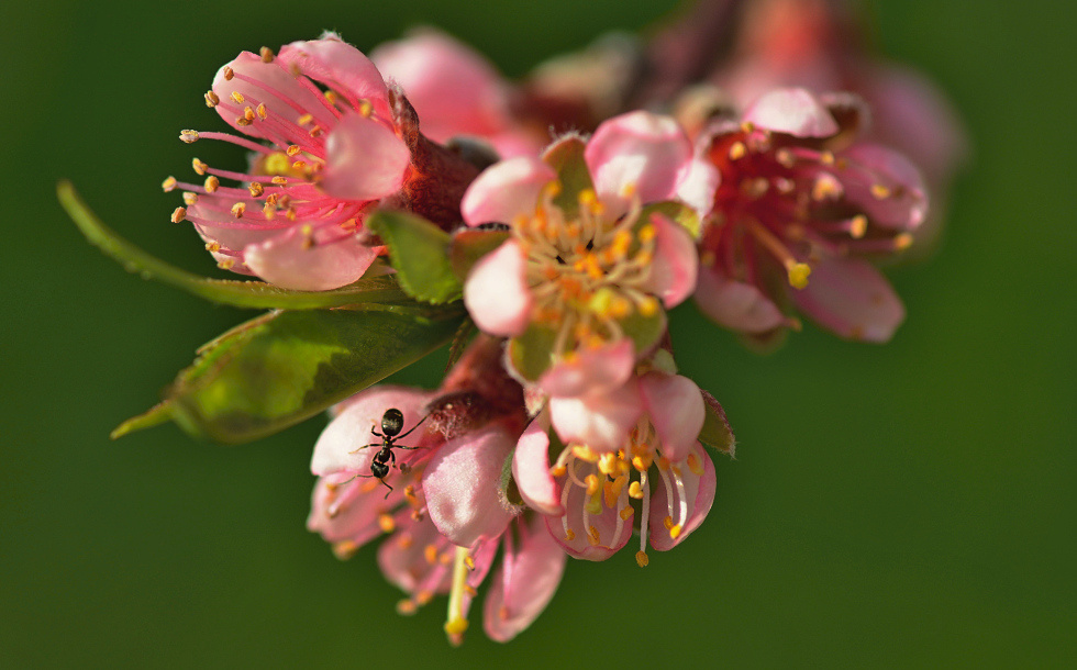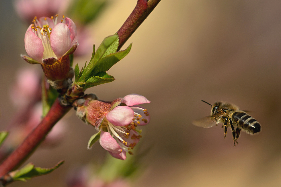 Květ broskve i s opylovačem