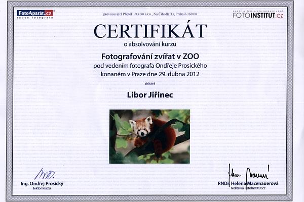 Dost písání mrkněte sami co jsem v ZOO v Praze dne 29.4.2012 stvořil.                               Certifikát